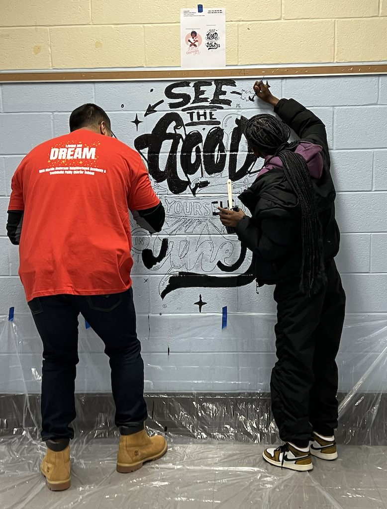 After a full day of collaborative work, we noticed a positive and beautiful shift in the hallways of the school – the vibe and ambiance felt much brighter. MANA students expressed a sense of community and belonging, having the opportunity to collaborate with YB Philly on such an impactful project.