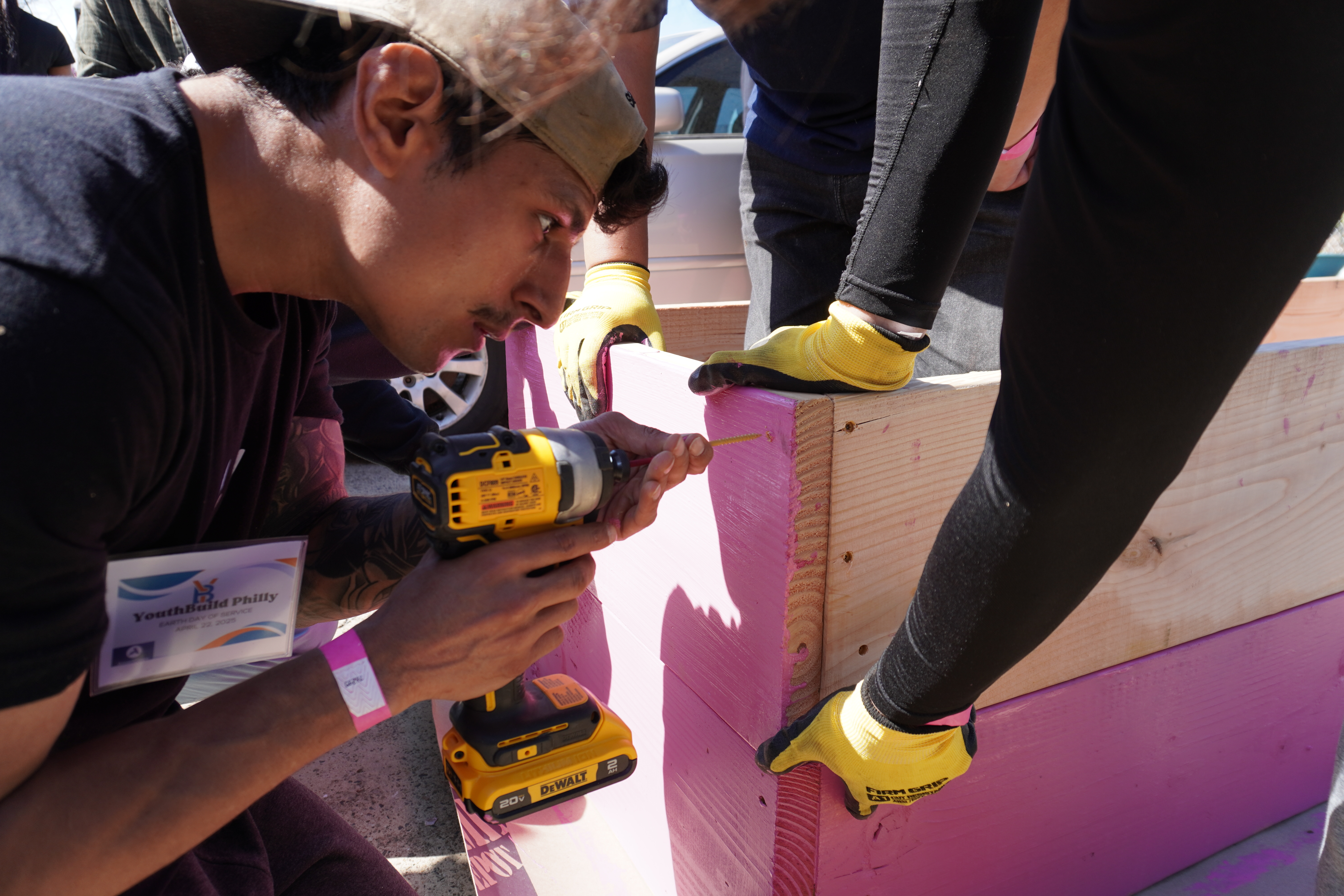 Students and staff from YB Philly and Urban Creators split into groups to divide and conquer the service projects. Teams were tasked with removing debris and putting down blocks for better gardening – this allows for better growth of plants throughout the garden. Some teams focused on building flower beds and garden boxes, while others brought them to life with fresh coats of paint once the construction was finished. Gardens, though human-made, play a vital role in supporting natural ecosystems. Keeping them healthy not only enhances their beauty but also helps sustain plant life and extend crop longevity.